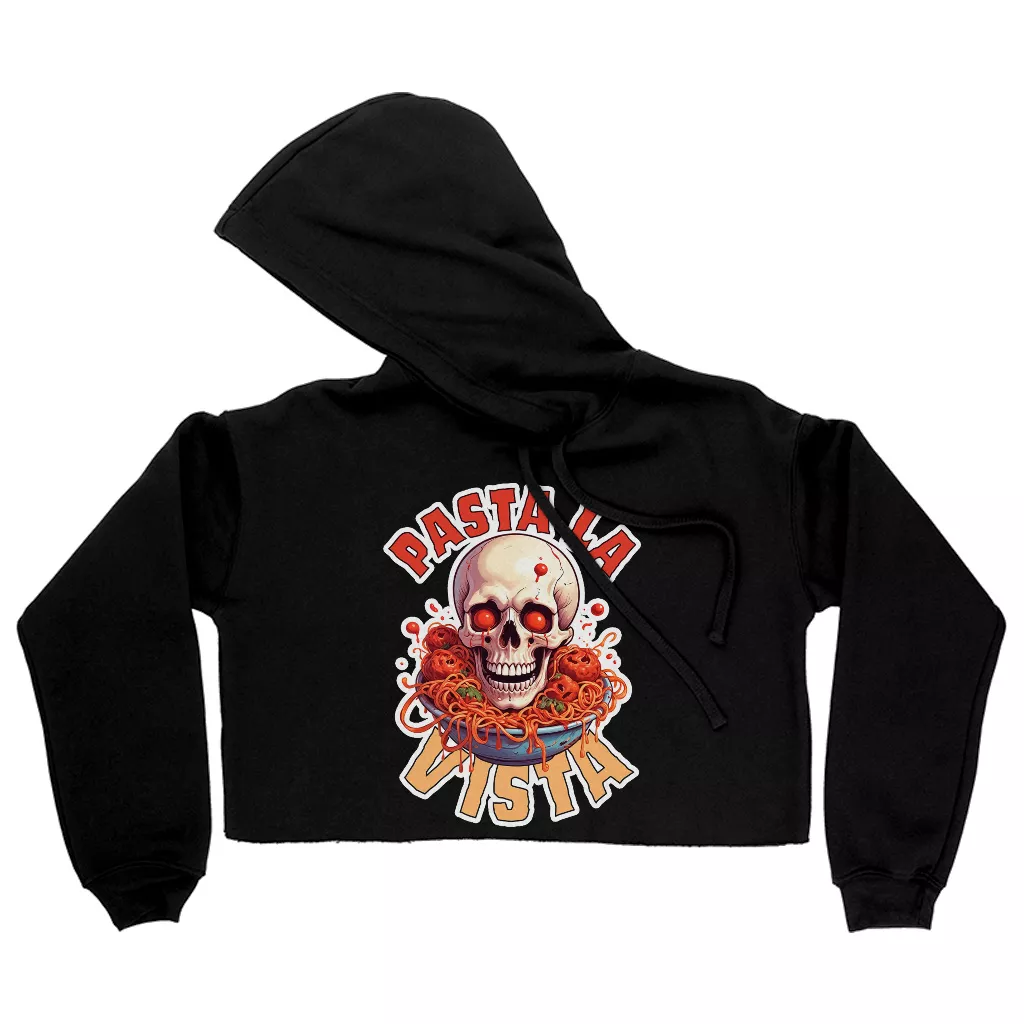Pasta La Vista Women’s Cropped Hoodie – Funny Foodie Hooded Sweatshirt – Food Pun Super Crop Top Hoodies