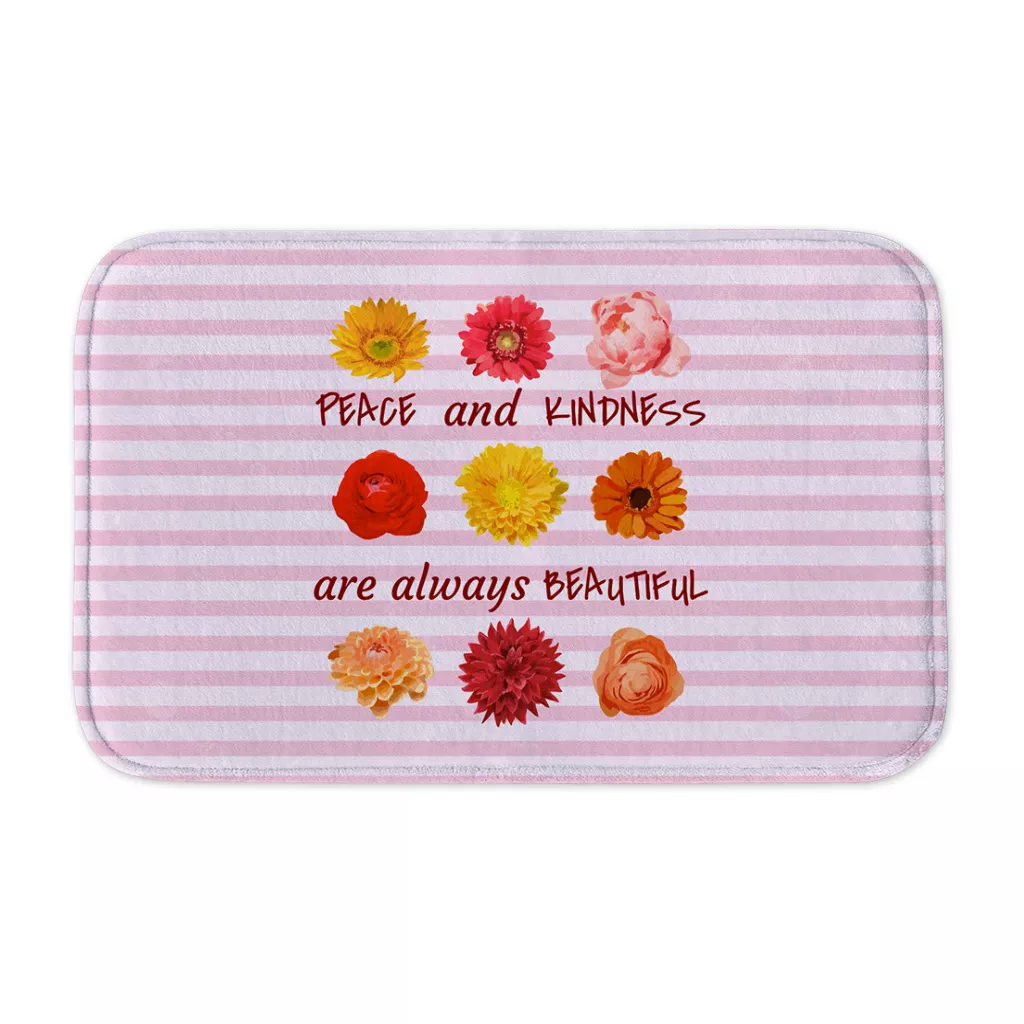 Peace and Kindness Are Always Beautiful Bath Mat – Positive Thoughts Bathroom Rug – Floral Bath Room Floor Mat