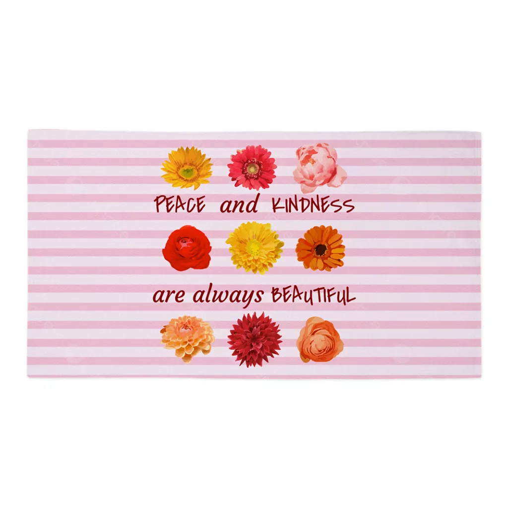 Peace and Kindness Are Always Beautiful Bath Spa Towel – Positive Thoughts Polycotton Towel – Floral Gift Towel