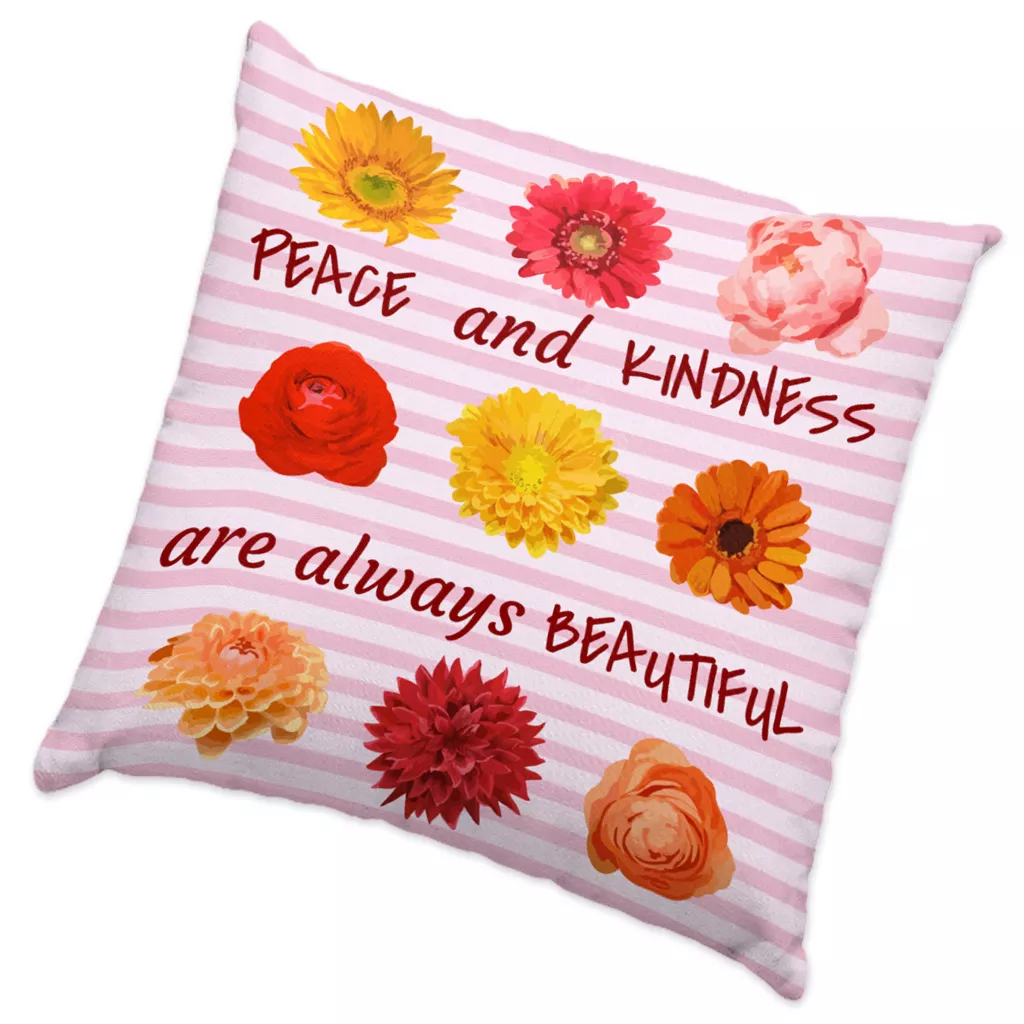 Peace and Kindness Are Always Beautiful Pillowcase – Floral Super Soft and Cozy Pillow Case – Positive Thoughts Decorative Square Throw Pillow Covers