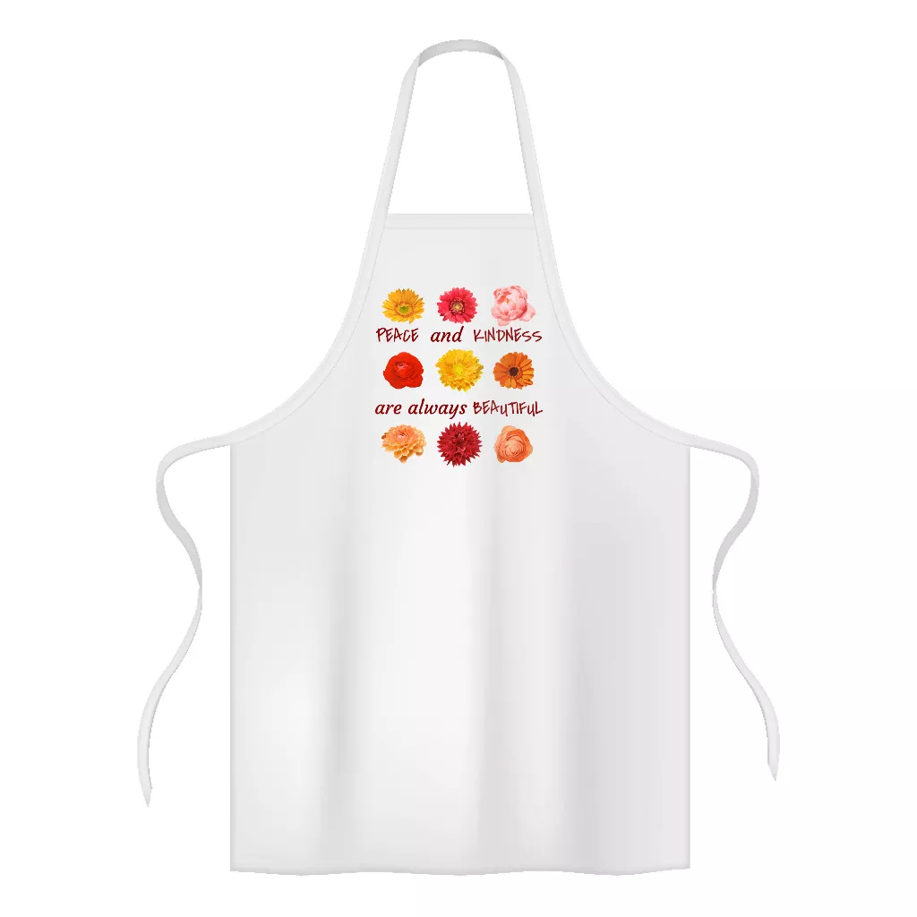 Peace and Kindness Are Always Beautiful Unisex Apron – Positive Thoughts Chef Apron for Kitchen – Floral Machine Washable Apron