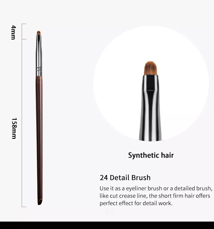 Featuring ultra-fine synthetic fiber bristles, this brush provides exceptional precision, ideal for both beginners and seasoned makeup artists. The firm yet soft bristles glide smoothly across your eyelids, offering unmatched control and accuracy. Crafted with a comfortable, durable log-wood handle and a wear-resistant aluminum ferrule, the brush ensures long-lasting performance and reliability.