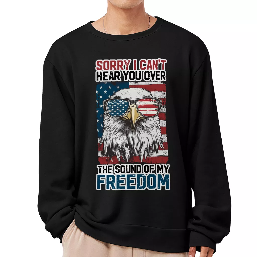 Can’t Hear You Over The Sound Of My Freedom Sweatshirt – Cool Eagle Crewneck Sweatshirt – American Flag Unisex Sweatshirt