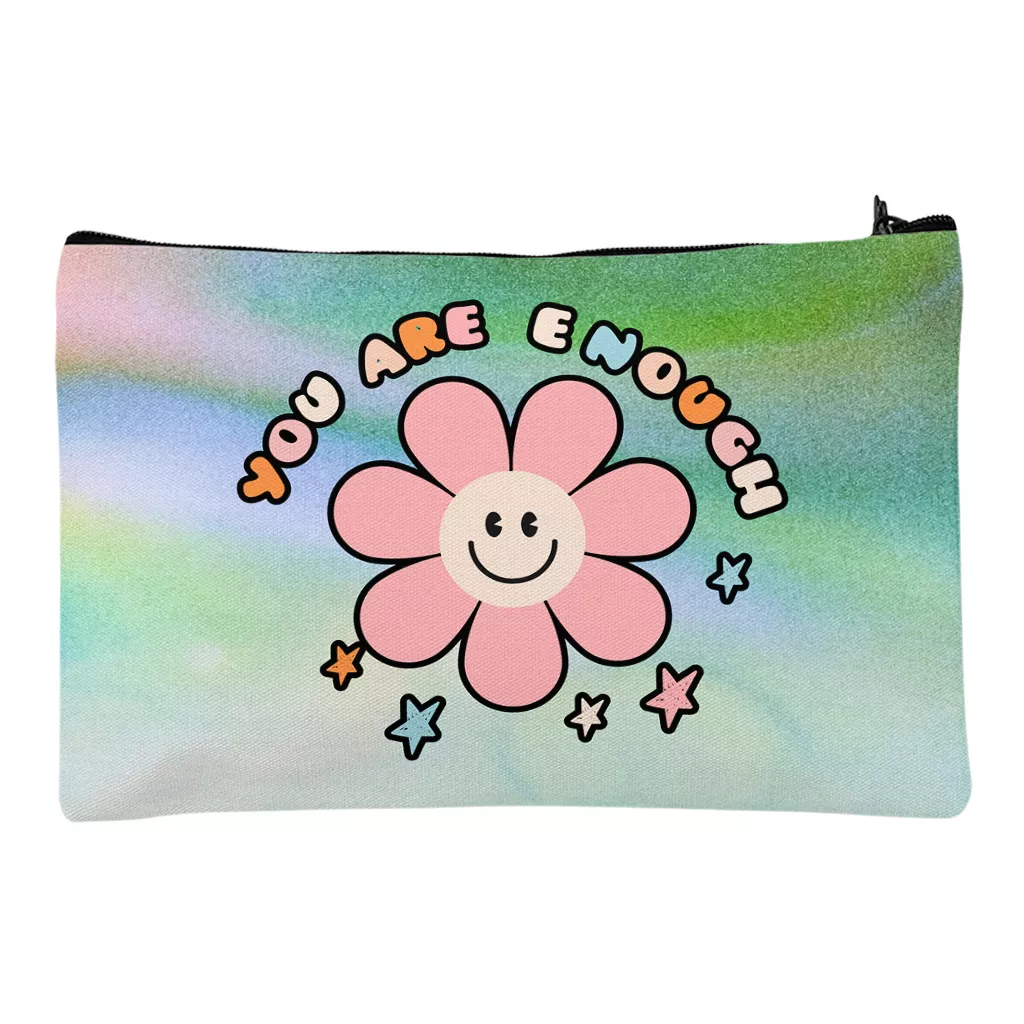 You Are Enough Travel Makeup Bag – Retro Flower Accessory Pouch