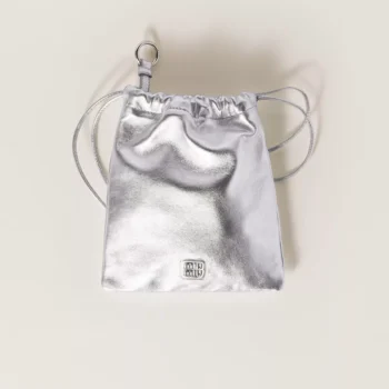 Miu Miu Leather Pouch with Drawstring Closure and Metal Logo