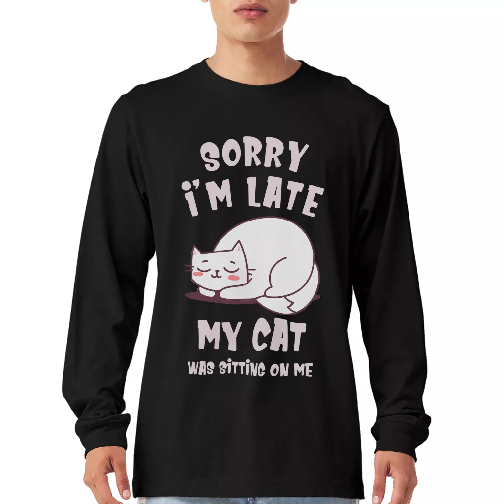 Sorry I’m Late My Cat Was Sitting On Me Long Sleeve T-Shirt – Funny Graphic T-Shirt – Cool Cat Basic Tee