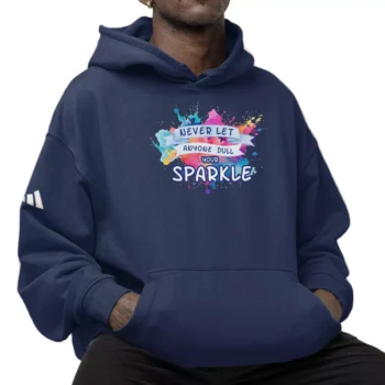 Never Let Anyone Dull Your Sparkle adidas Hoodie – Colorful Graphic Unisex Fleece Hoodie – Positive Vibes Hooded Sweatshirt