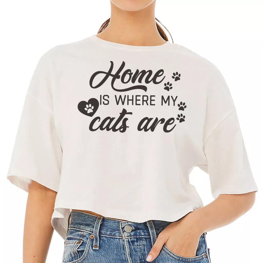 Home Is Where My Cats Are Cropped T-Shirt – Funny Pet Trendy Tee – Cat Lover Women’s Basic T-Shirt