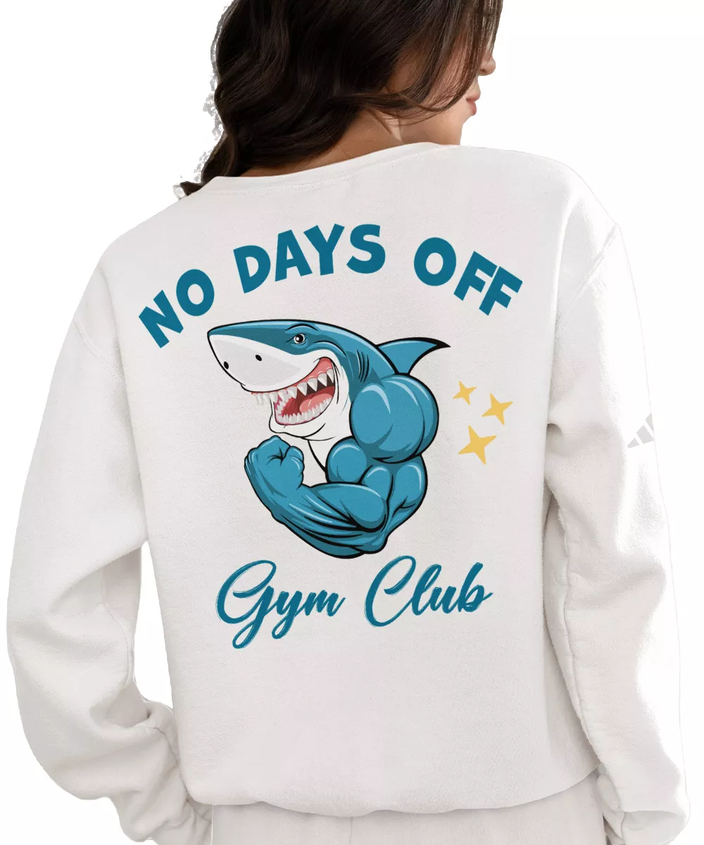 No Days Off adidas Sweatshirt – Muscular Shark Sweatshirt – Fitness Motivation Crewneck Sweatshirt