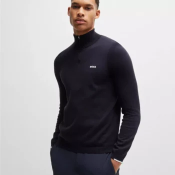 Boss Men’s Blue Turtleneck Zip-Up Cardigan