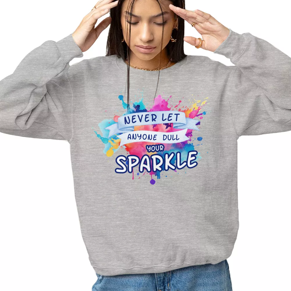 Never Let Anyone Dull Your Sparkle adidas Sweatshirt – Positive Vibes Sweatshirt – Colorful Graphic Crewneck Sweatshirt