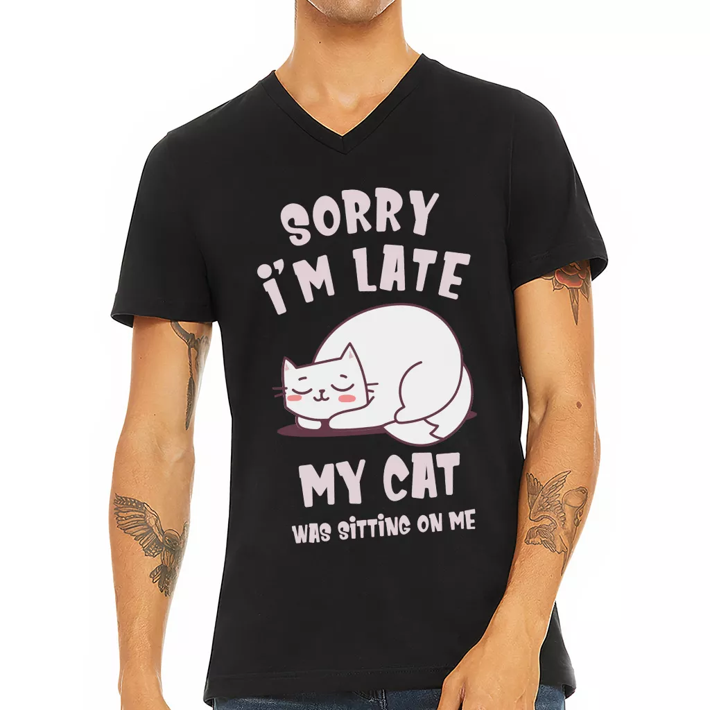 Sorry I’m Late My Cat Was Sitting On Me V-Neck T-Shirt – Cool Cat Basic T-Shirt – Funny Graphic Tee