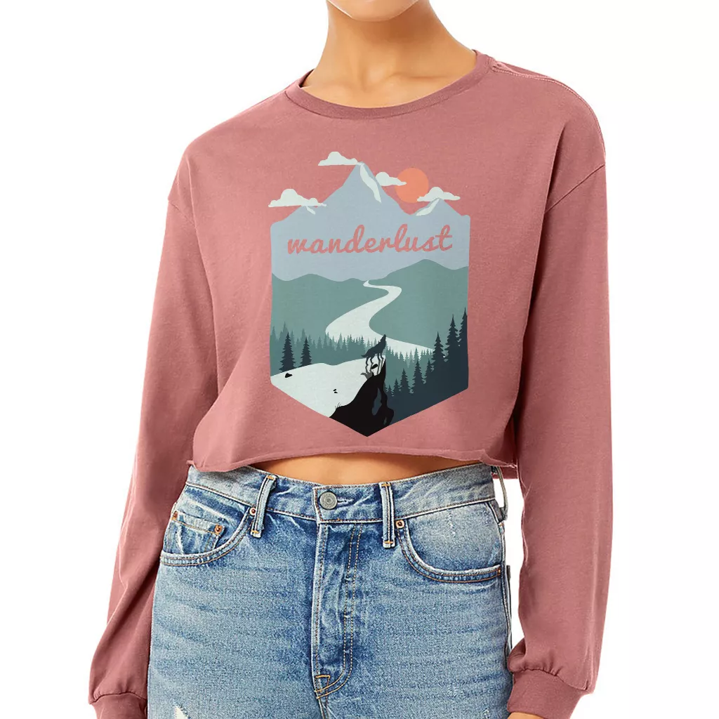 Wanderlust Cropped Long Sleeve Sweatshirt – Outdoorsy Women’s Crop Top – Mountains Long Sleeves Pullover