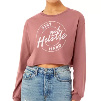 Stay Humble Hustle Hard Cropped Long Sleeve Sweatshirt – Hustler Women’s Crop Top – Entrepreneur Quote Long Sleeves Pullover