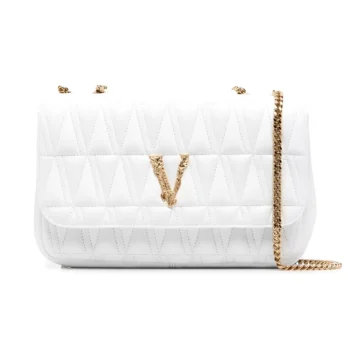 Versace White Crossbody Bag with Adjustable Strap and Pink Lining