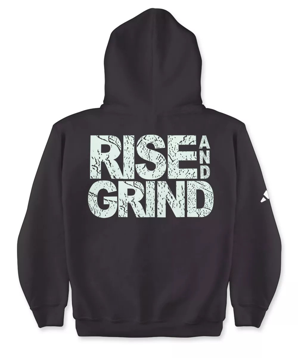 Rise and Grind adidas Hoodie – Inspirational Unisex Fleece Hoodie – Motivational Gym Hooded Sweatshirt