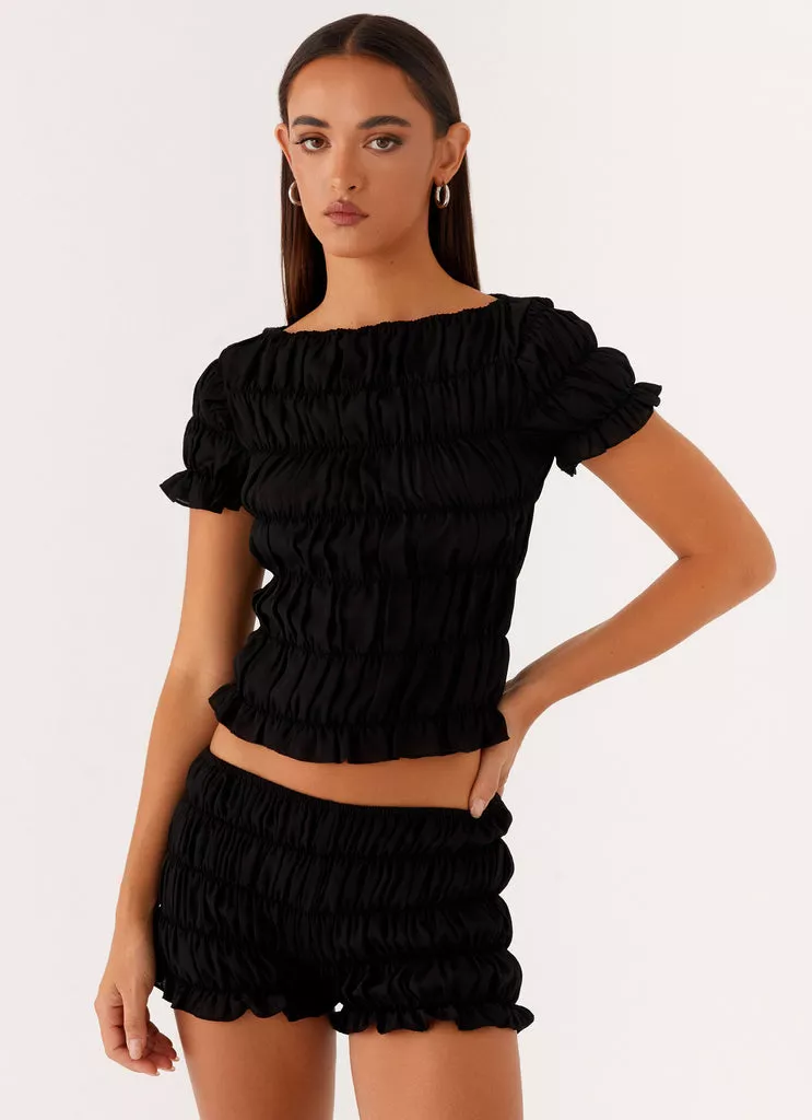 • Includes: 1 short sleeve ruched top + 1 pair of matching shorts