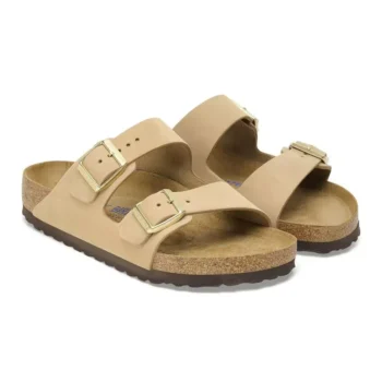 Birkenstock Women’s Beige Slippers with Buckle & Leather Lining