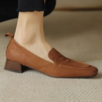Women’s Genuine Leather Square Toe Slip-On Flats