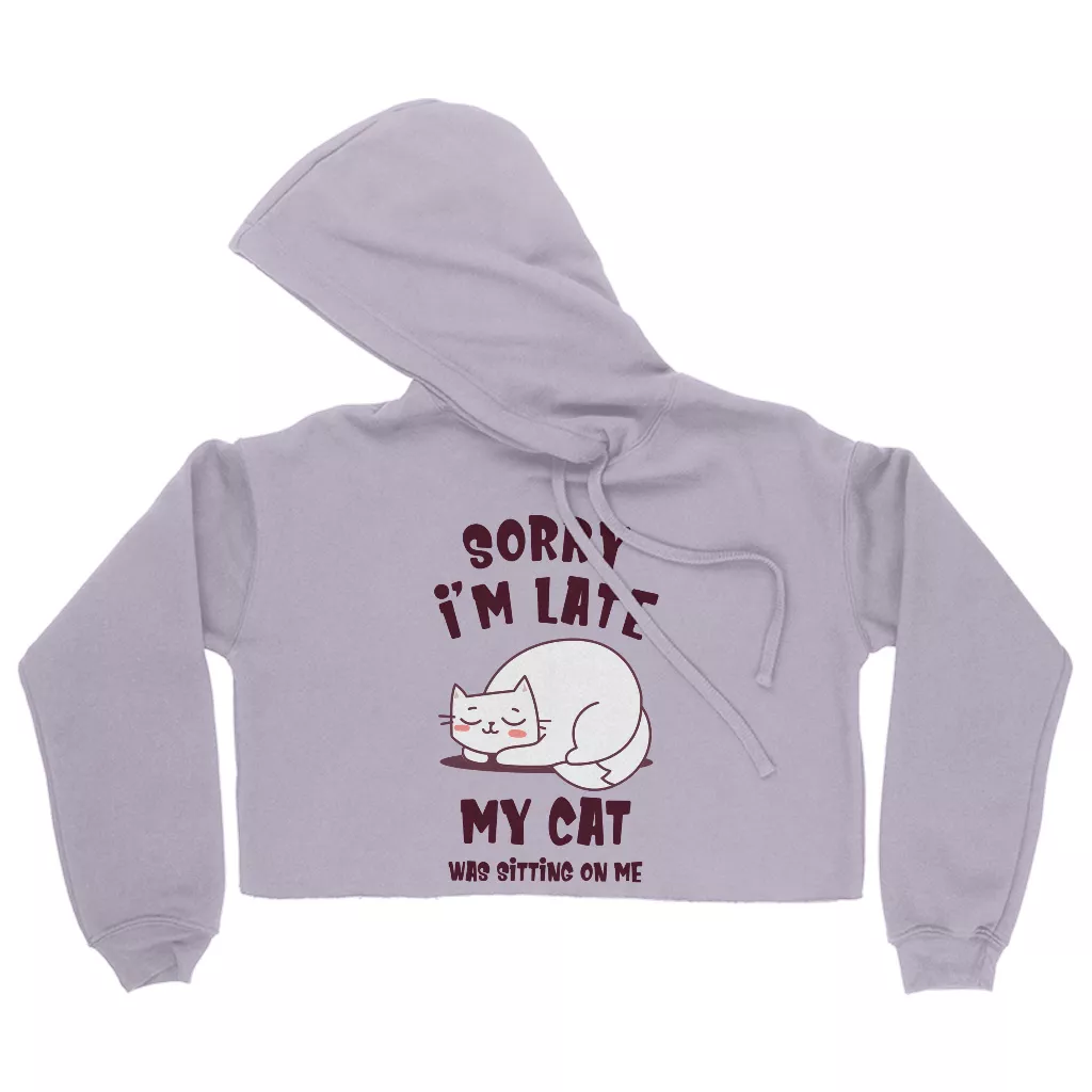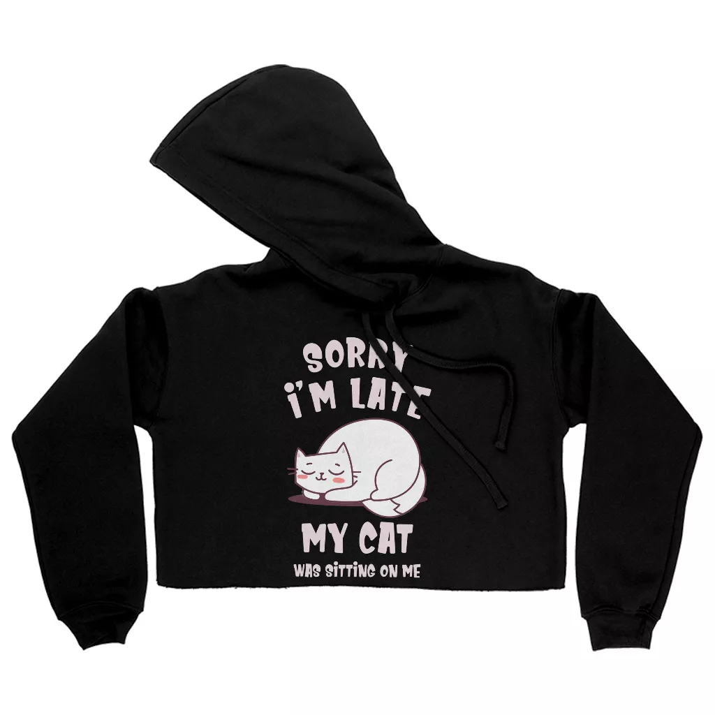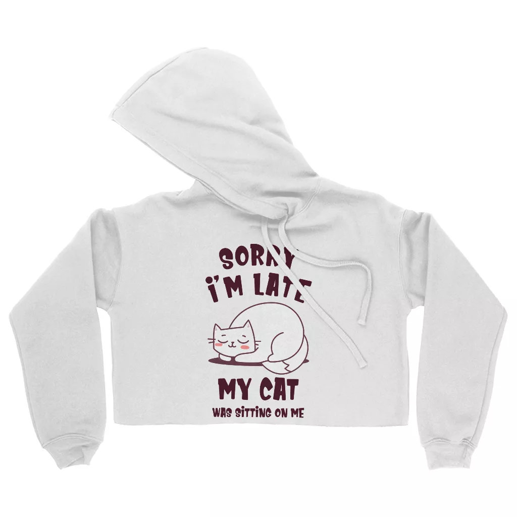 Sorry I’m Late My Cat Was Sitting On Me Women’s Cropped Hoodie – Funny Graphic Hooded Sweatshirt – Cool Cat Super Crop Top Hoodies