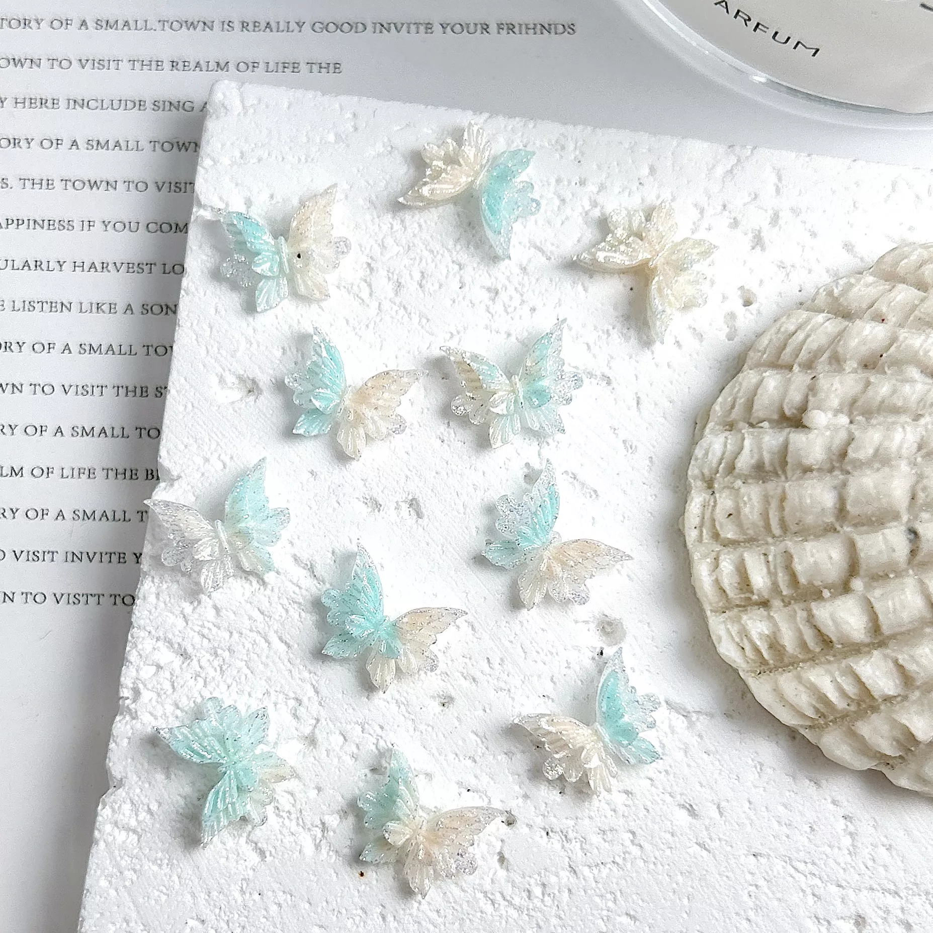 Each butterfly charm is carefully crafted from high-quality resin, offering a lightweight and durable finish that sits comfortably on your nails without weighing them down. The double-layered wings provide a realistic 3D effect, while the luminous gradient colors catch the light at every angle. Available in dreamy hues like pink, blue, green, and more, there’s a color to suit every mood and style.