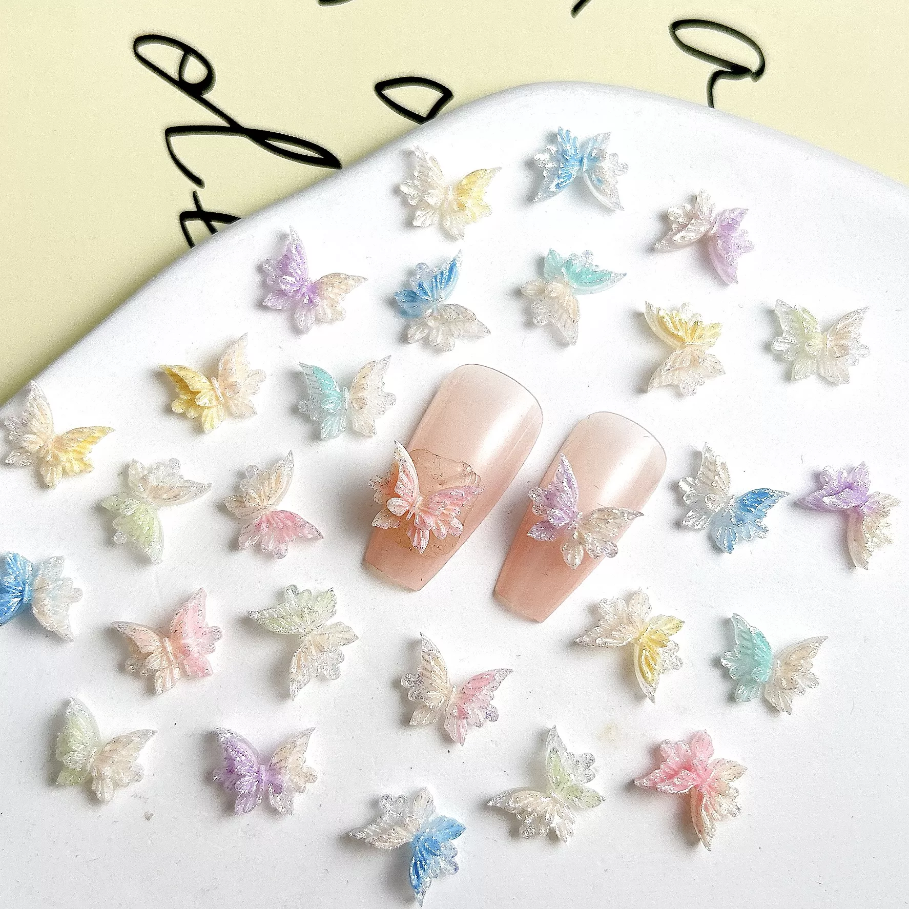 Unlike standard flat nail stickers or gems, our butterfly charms are sculpted with a double-layer design for added depth. The resin material allows for a luminous effect that shines gently under light—creating a soft glow that feels both elegant and enchanting. And with multiple colors and pack sizes to choose from, you can mix and match for endless creativity.