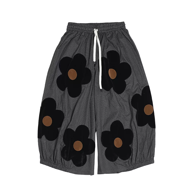 Spring Floral Velvet Patch Wide Leg Pants for Women – Japanese Style