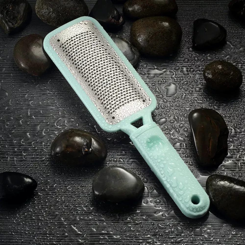 Experience the ultimate pedicure at home with our Stainless Steel Double-Sided Foot Rasp. Designed to effortlessly remove hard, dead skin and calluses, this foot care tool ensures your feet stay smooth and soft. Perfect for maintaining beautiful feet all year round, this foot file is a must-have for anyone looking to achieve salon-quality results without leaving the house.