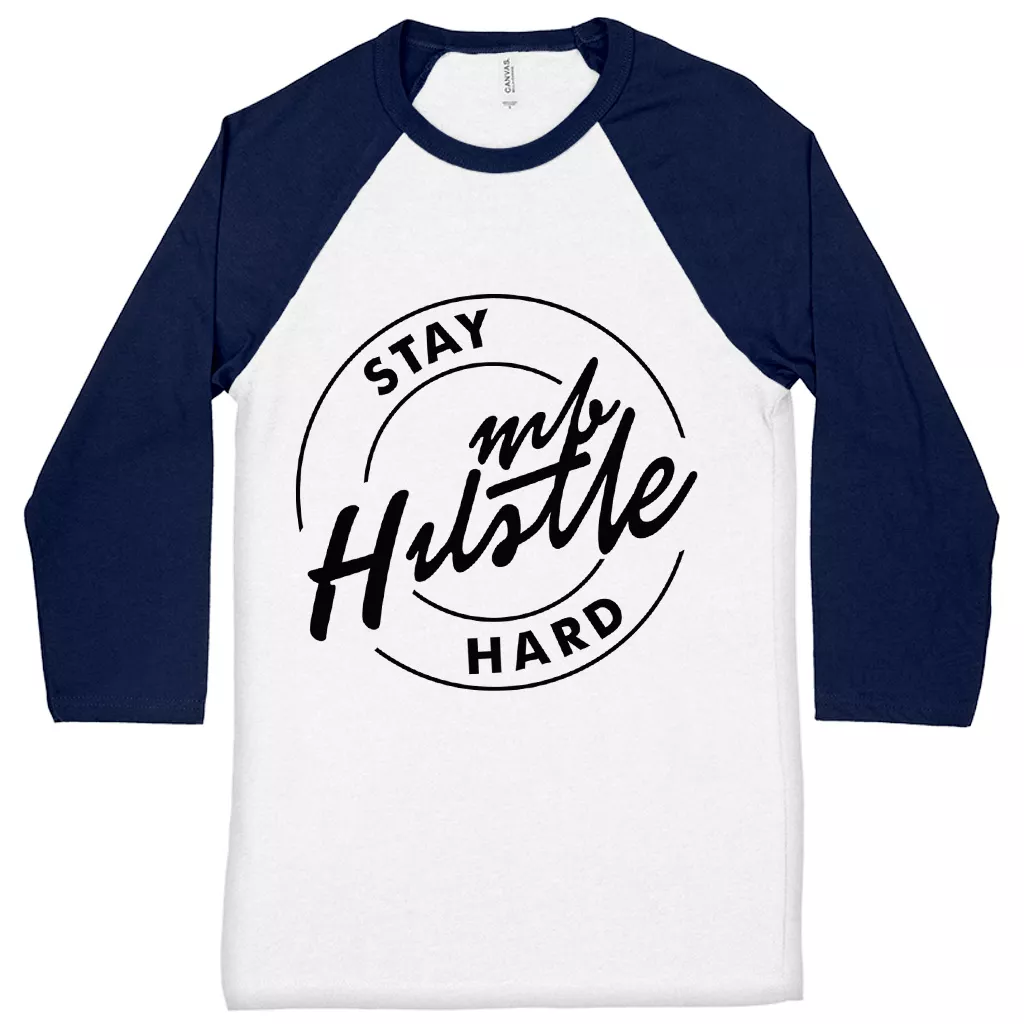 Stay Humble Hustle Hard Baseball T-Shirt is proudly made with 7x less water than average manufacturers, in recycle-friendly facilities that also guarantee zero sweatshop conditions. Hustler 3/4 Sleeve is designed and printed in California.