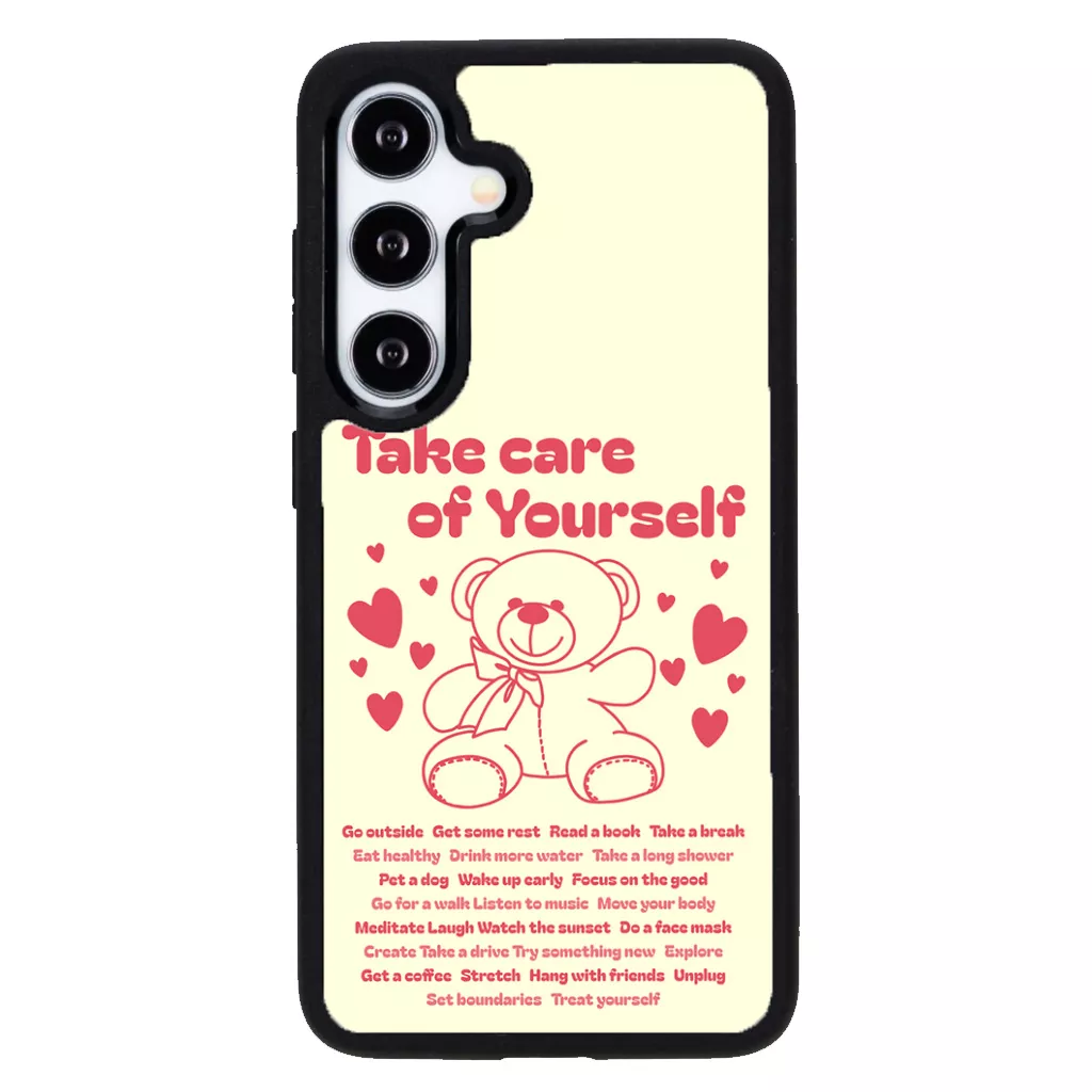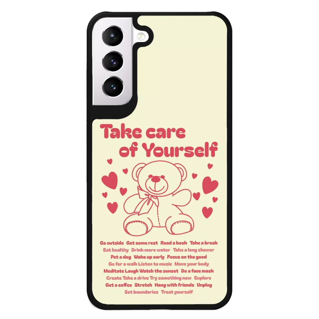Take Care Of Yourself Samsung Galaxy S24/S23/S22/S21 Case – Cute Teddy Bear Protective Phone Case – Positive Quote Samsung Case