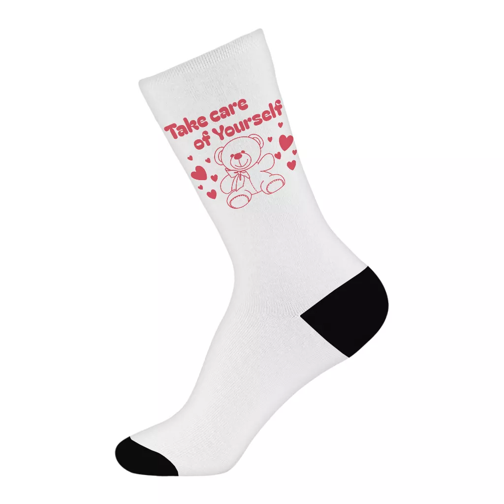 Take Care Of Yourself Unisex Socks – Positive Quote Socks – Cute Teddy Bear Crew Socks