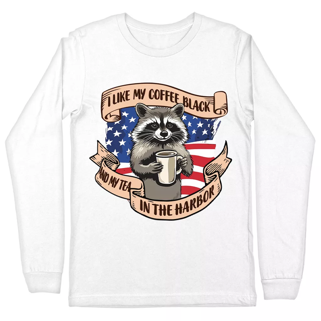 Tea in the Harbor Long Sleeve T-Shirt – Funny Raccoon T-Shirt – Cool Quote Basic Tee