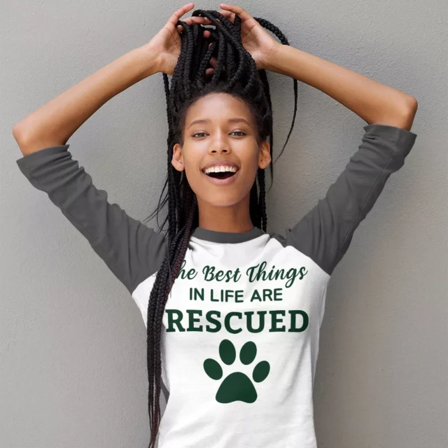 The Best Things in Life Are Rescued Baseball T-Shirt – Rescue Dog 3/4 Sleeve – Paw Print Raglan Jersey Shirt