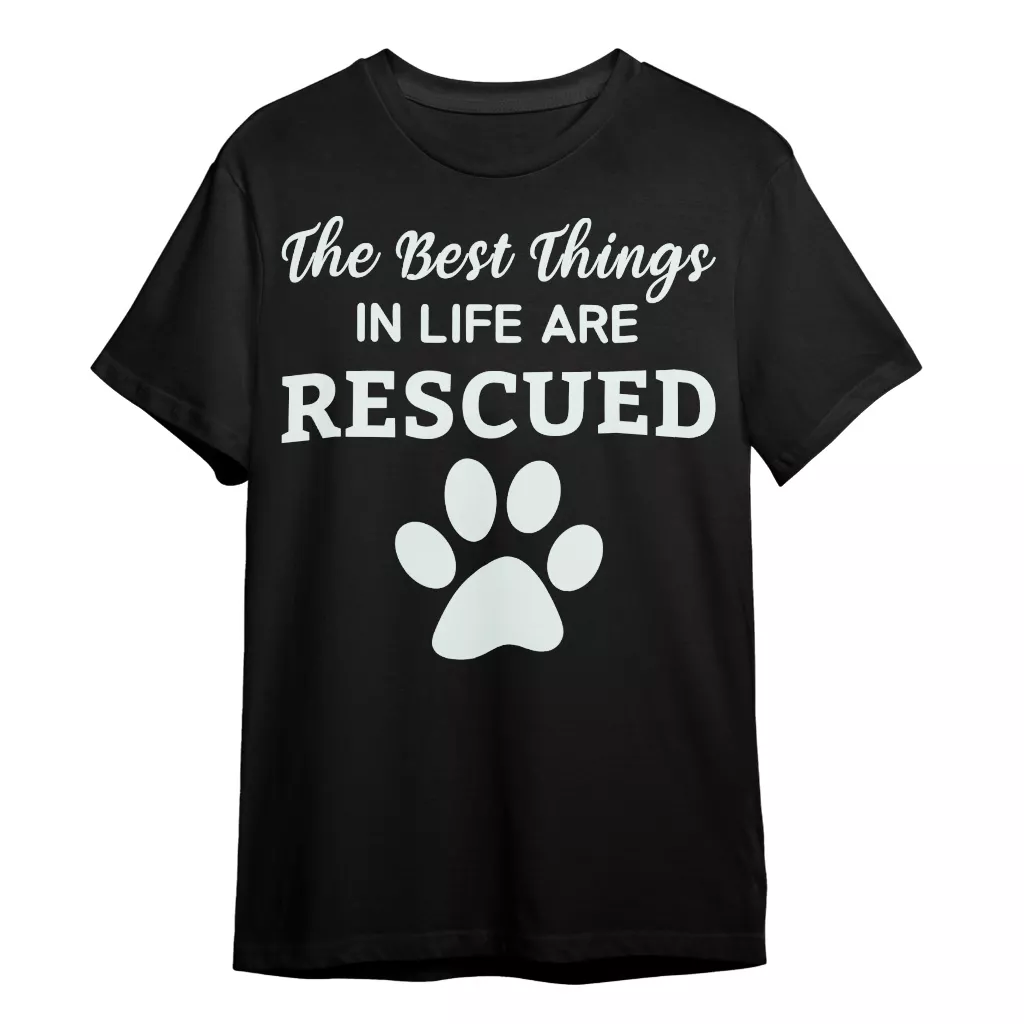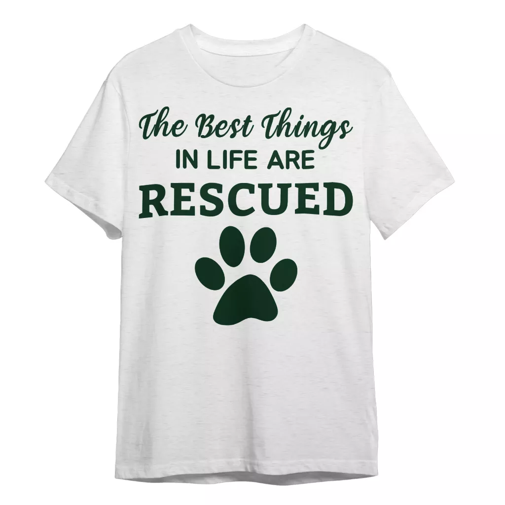 The Best Things in Life Are Rescued T-Shirt – Paw Print Heavy Cotton Tee – Rescue Dog Shirt