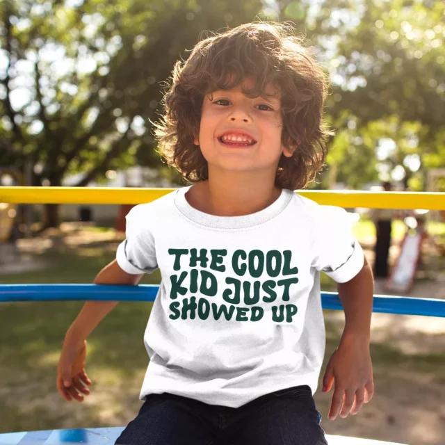 The Cool Kid Just Showed Up Kids’ Cotton T-Shirt – Funny Design Short Sleeve Tee – Retro Graphic T-Shirt for Kids