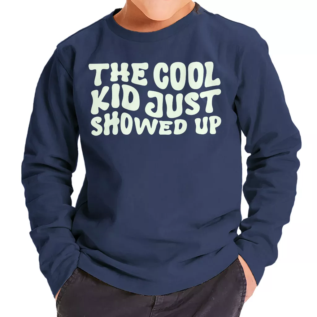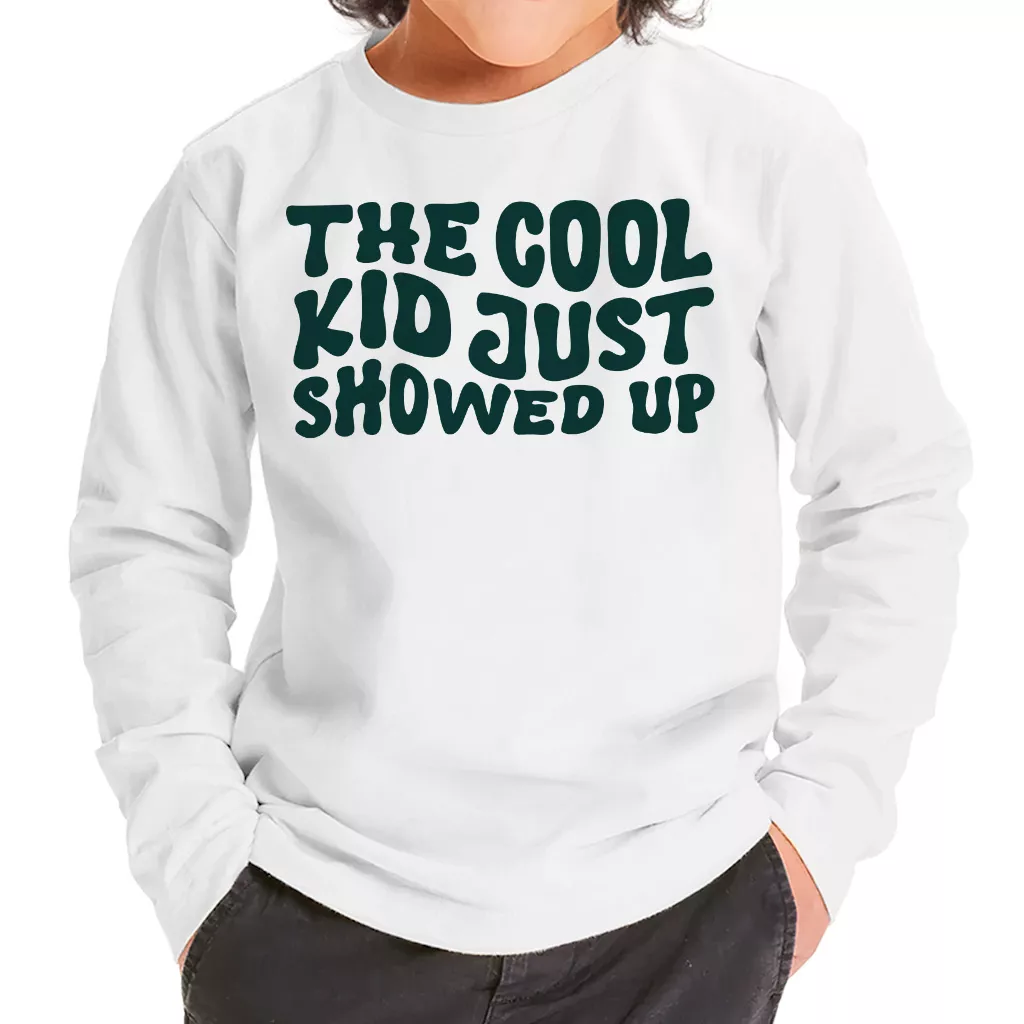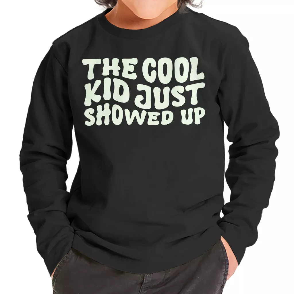 The Cool Kid Just Showed Up Toddler Long Sleeve T-Shirt – Funny Design Boy Girl Tee – Retro Graphic T-Shirt for Kids