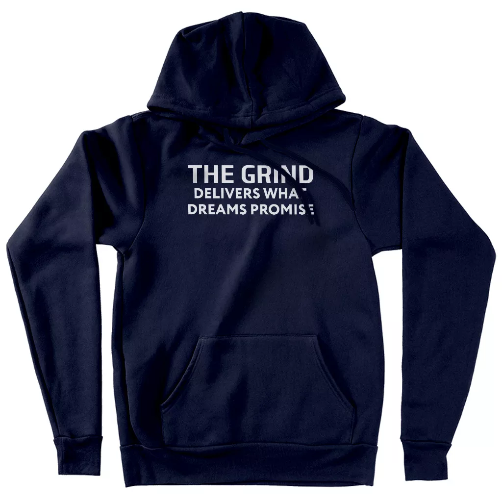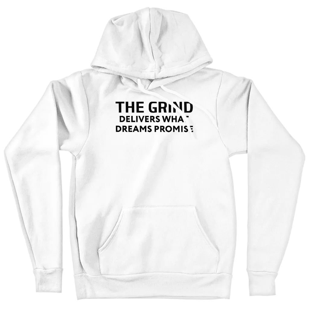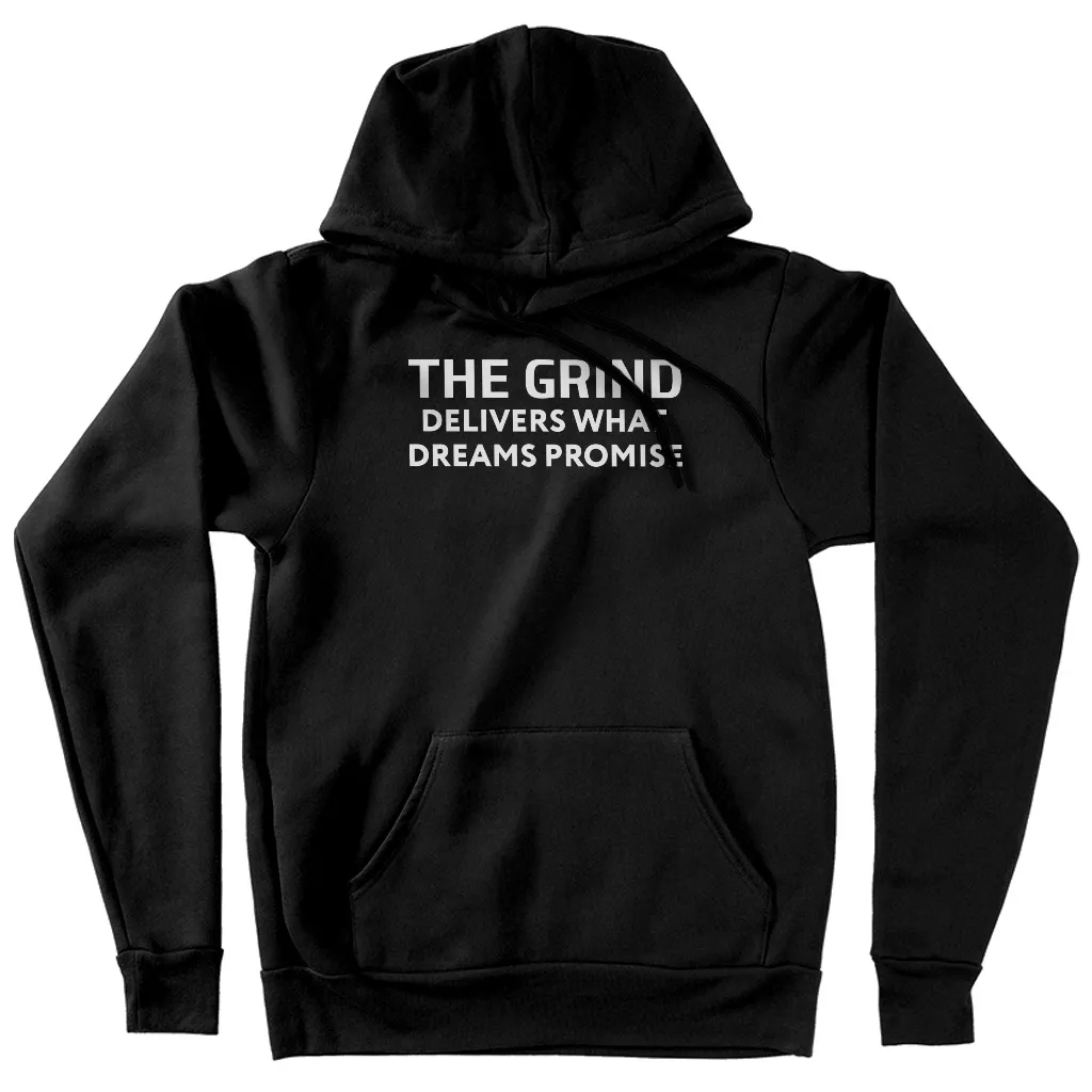 The Grind Delivers What Dreams Promise Hoodie – Work Hard Graphic Hooded Sweatshirt – Hustle Quote Unisex Hoodie