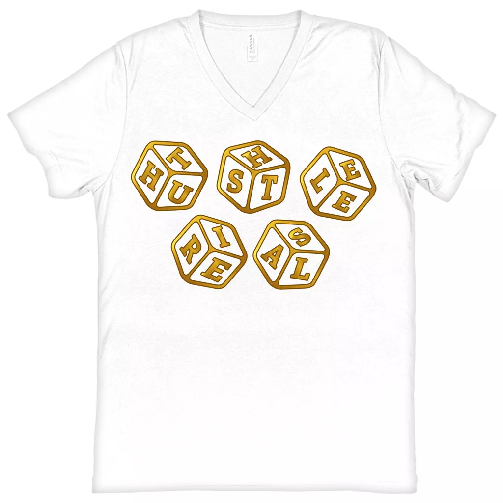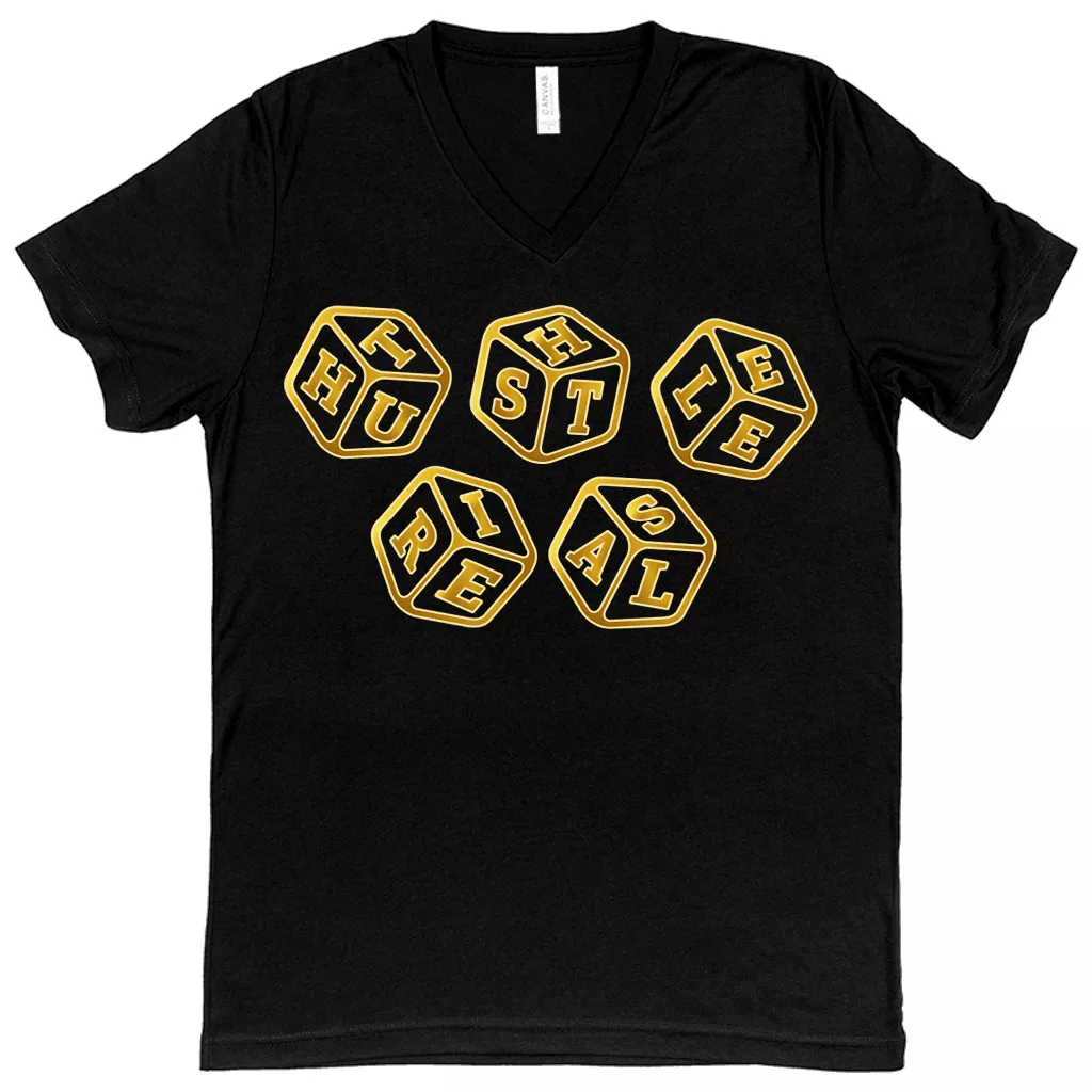 The Hustle Is Real V-Neck T-Shirt is proudly made with 7x less water than average manufacturers, in recycle-friendly facilities that also guarantee zero sweatshop conditions
