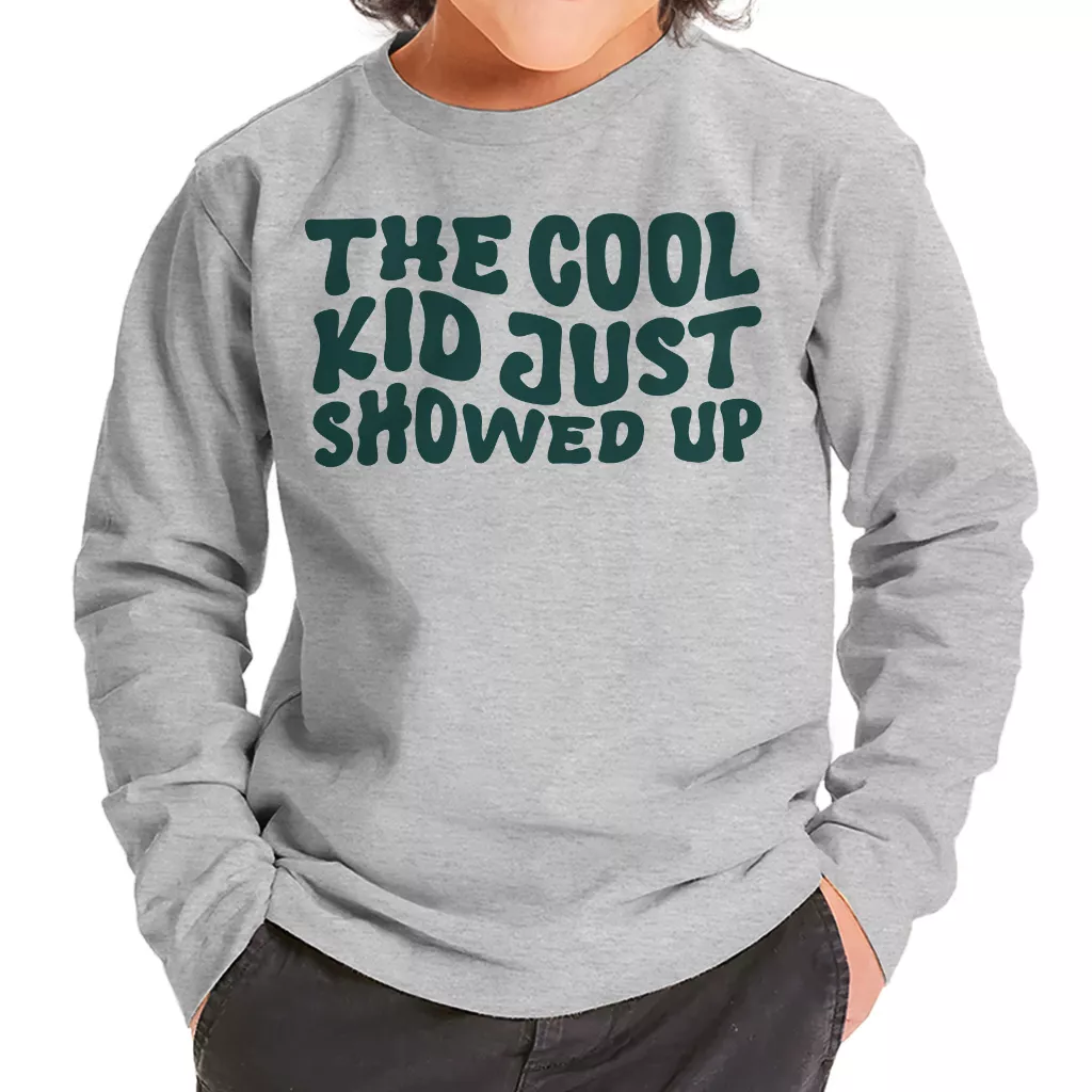 The Cool Kid Just Showed Up Toddler Long Sleeve T-Shirt – Funny Design Boy Girl Tee – Retro Graphic T-Shirt for Kids