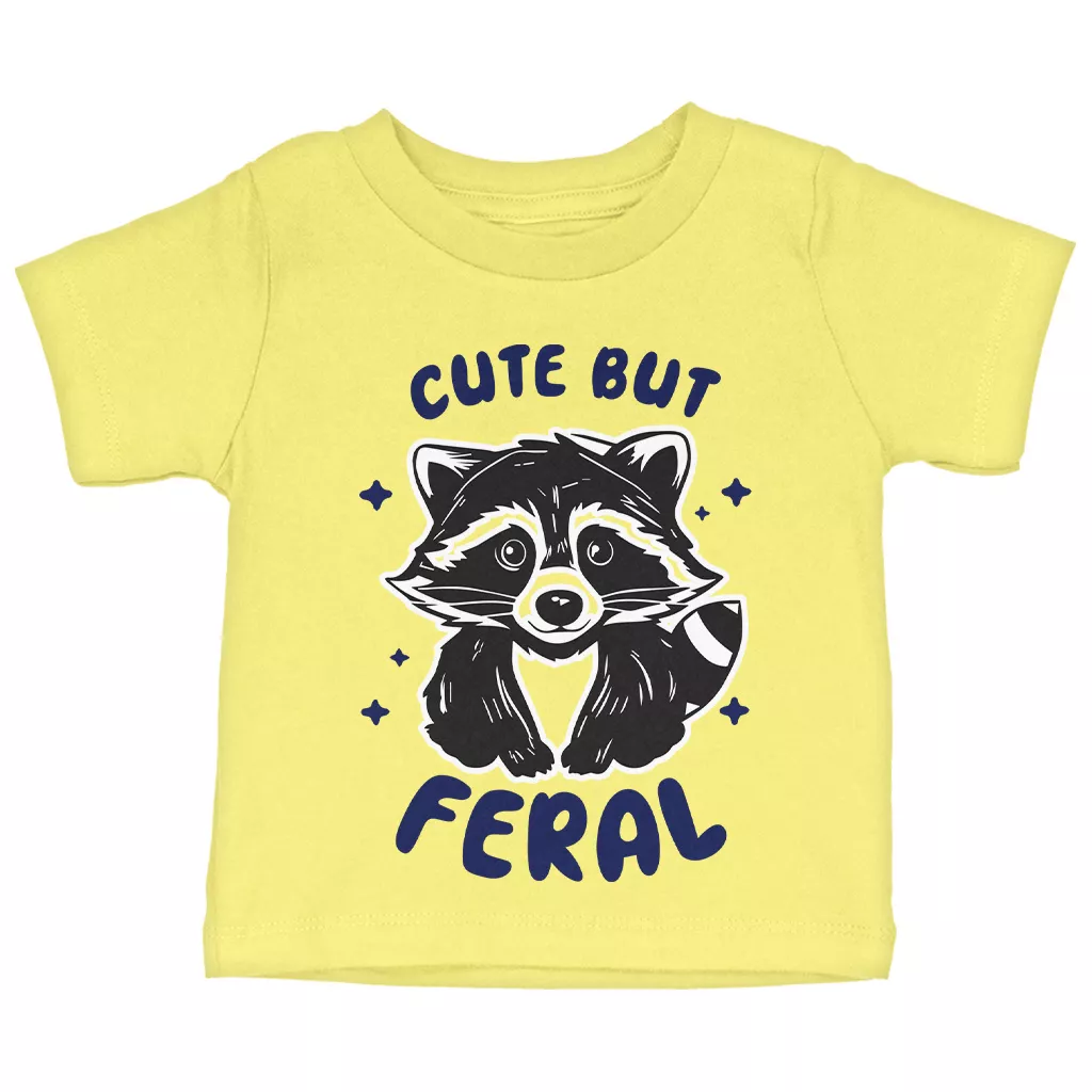 Cute But Feral Toddler Cotton T-Shirt – Animal Graphic Short Sleeve Tee – Meme Raccoon T-Shirt for Kids