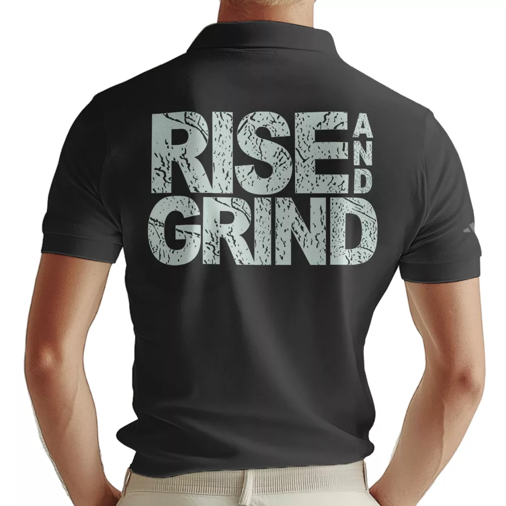 Rise and Grind adidas Polo Shirt – Inspirational Short Sleeve Tactical Shirts – Motivational Gym Lightweight Golf Shirts