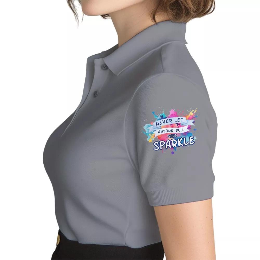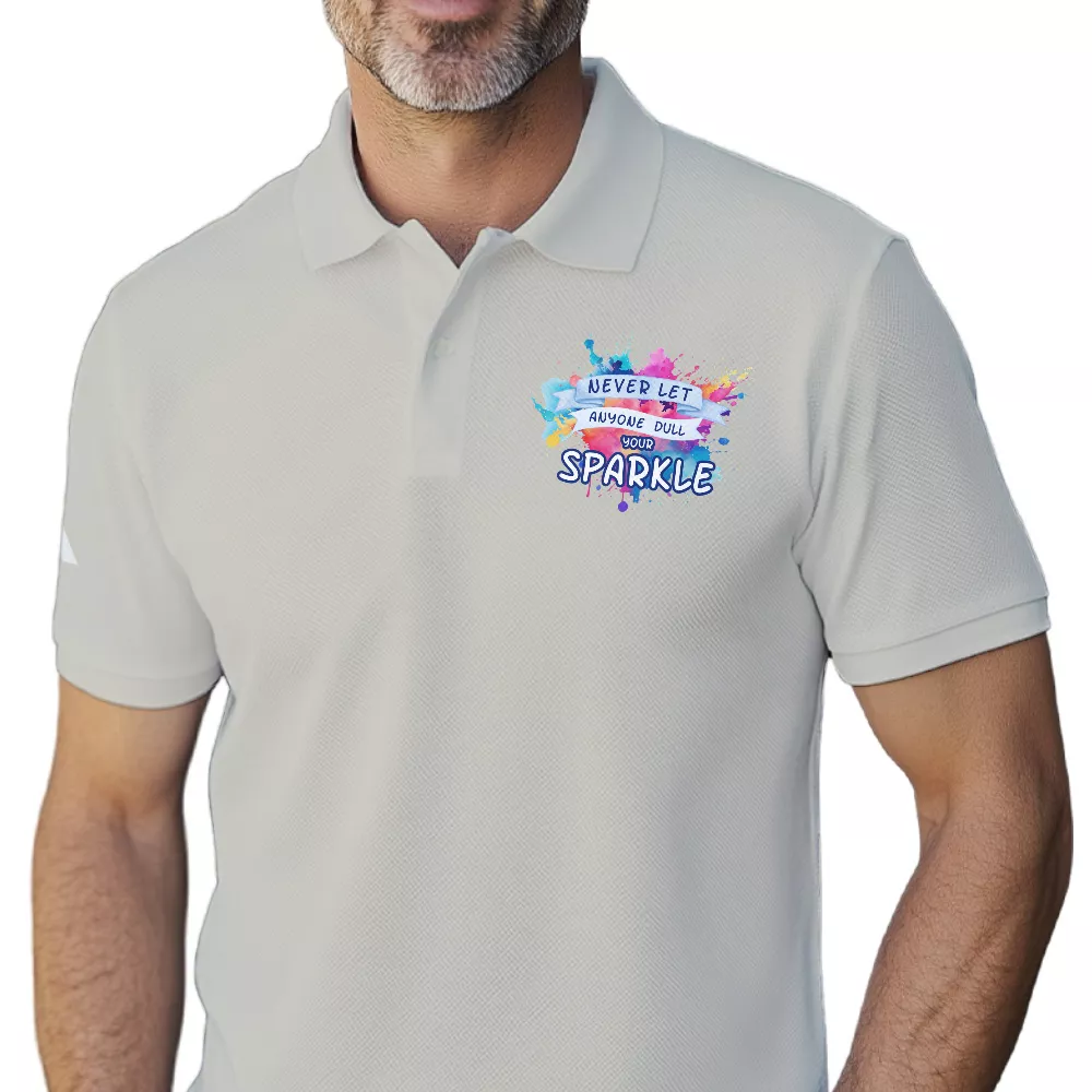 Never Let Anyone Dull Your Sparkle adidas Polo Shirt – Positive Vibes Short Sleeve Tactical Shirts – Colorful Graphic Lightweight Golf Shirts