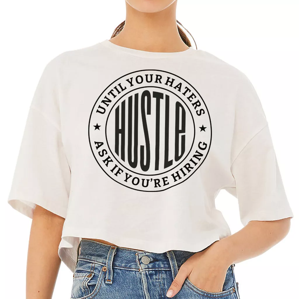 Hustle Until Your Haters Ask If You’re Hiring Cropped T-Shirt – Hustle and Grind Trendy Tee – Funny Women’s Basic T-Shirt