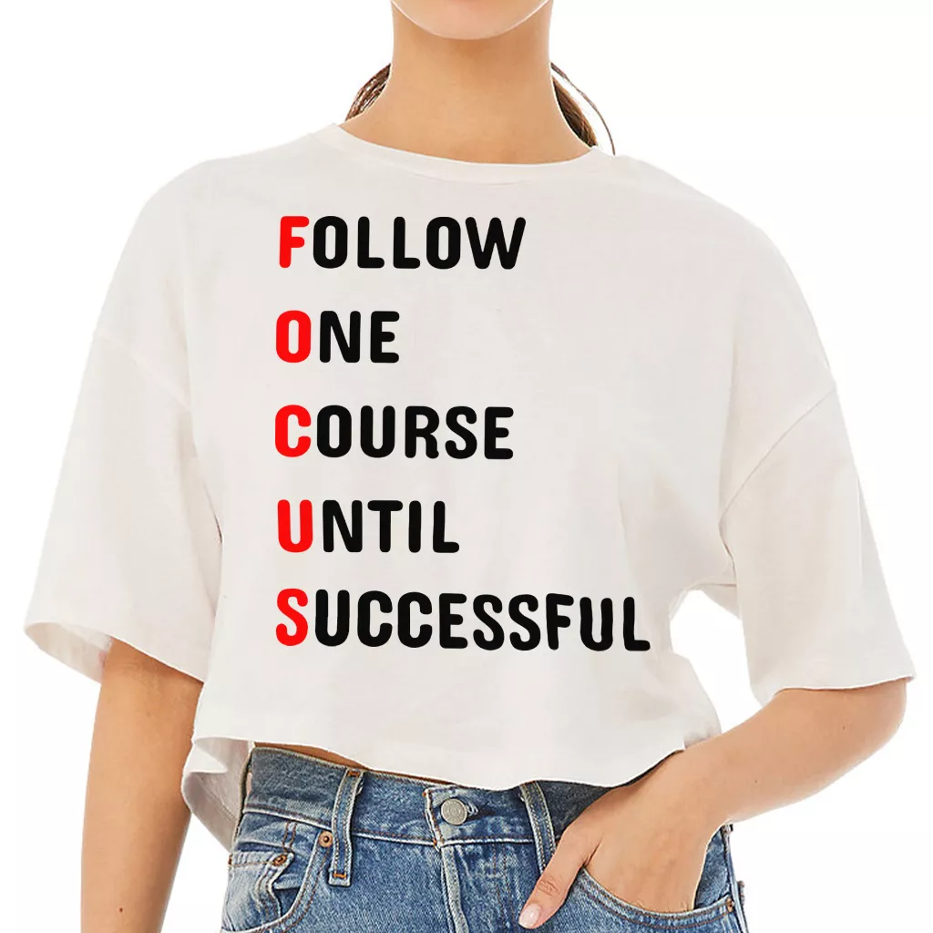 Focus Word Art Cropped T-Shirt – Motivational Quote Trendy Tee – Success Mindset Women’s Basic T-Shirt