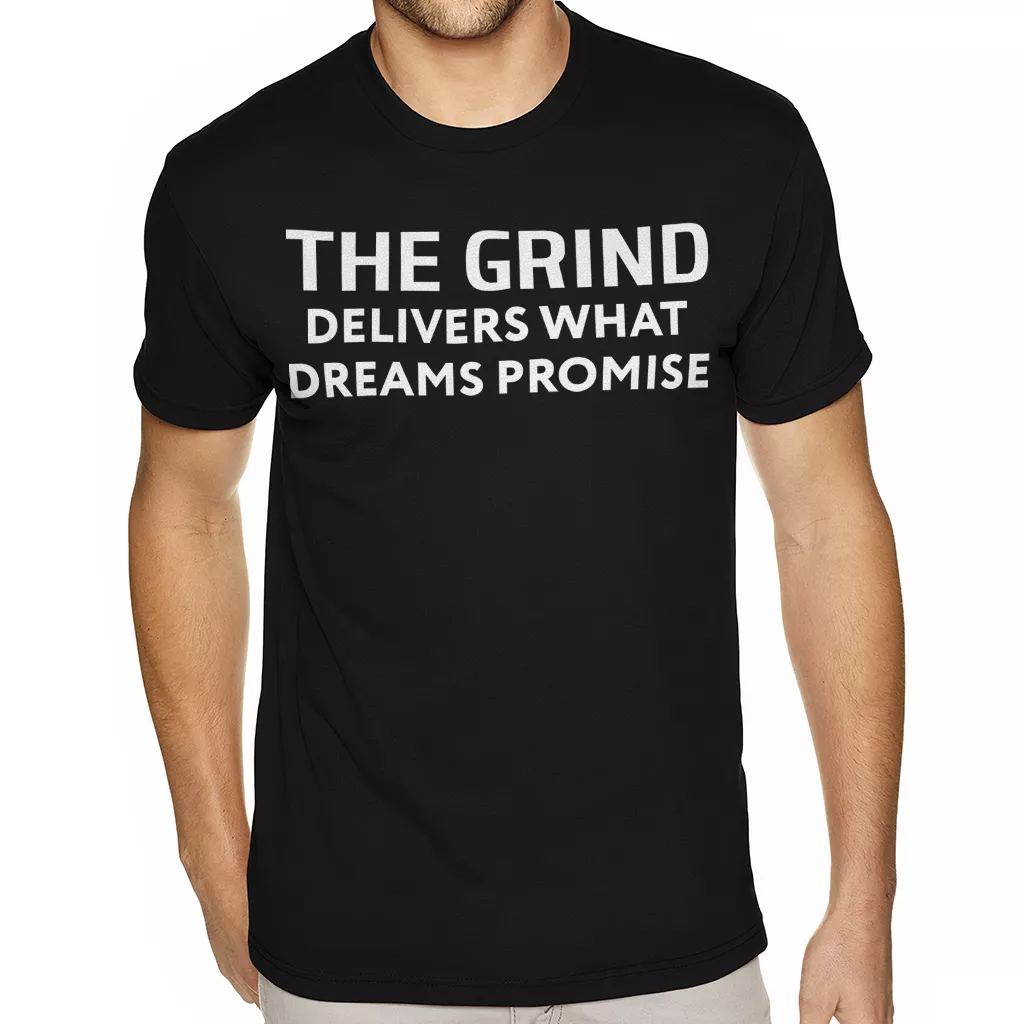 The Grind Delivers What Dreams Promise T-Shirt – Hustle Quote Heavy Cotton Tee – Work Hard Graphic Shirt