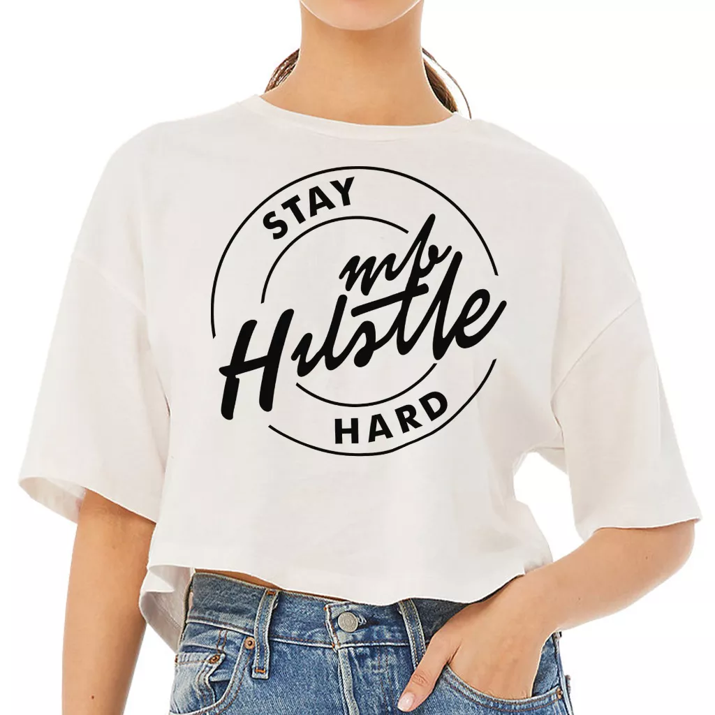 Stay Humble Hustle Hard Cropped T-Shirt – Hustler Trendy Tee – Entrepreneur Quote Women’s Basic T-Shirt