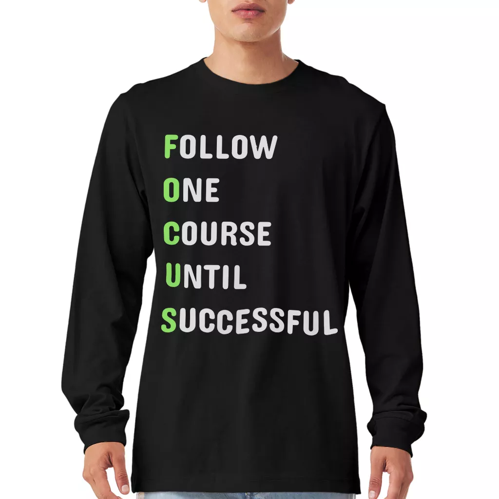 Focus Word Art Long Sleeve T-Shirt – Success Mindset T-Shirt – Motivational Quote Basic Tee