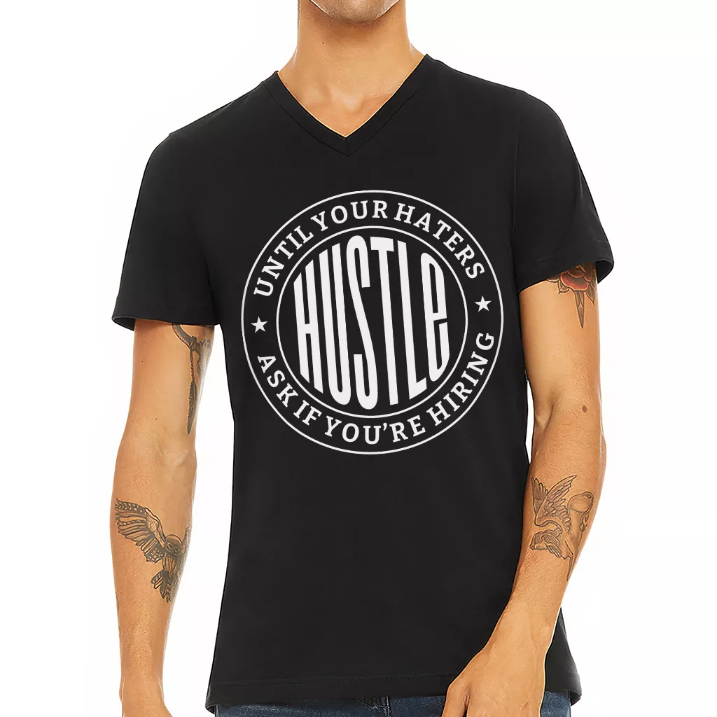 Hustle Until Your Haters Ask If You’re Hiring V-Neck T-Shirt – Hustle and Grind Basic T-Shirt – Funny Tee