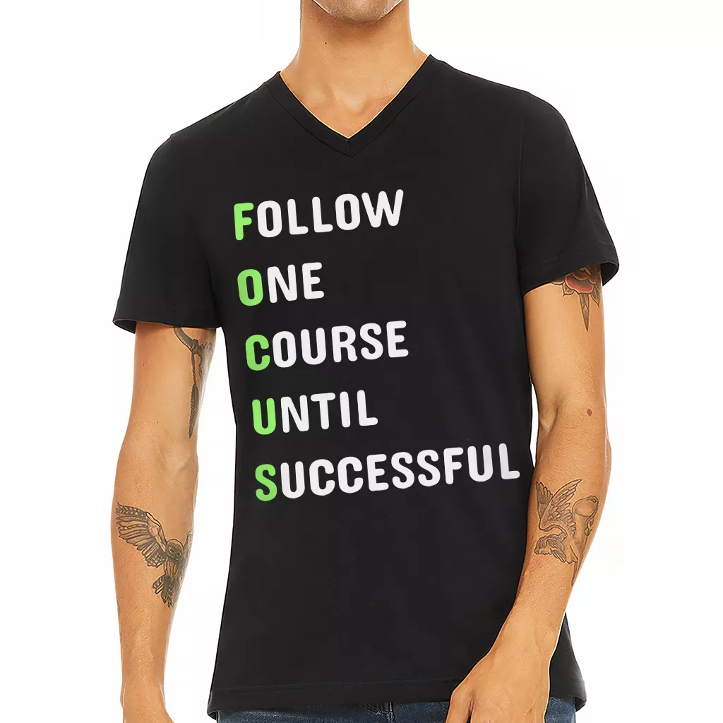 Focus Word Art V-Neck T-Shirt – Success Mindset Basic T-Shirt – Motivational Quote Tee