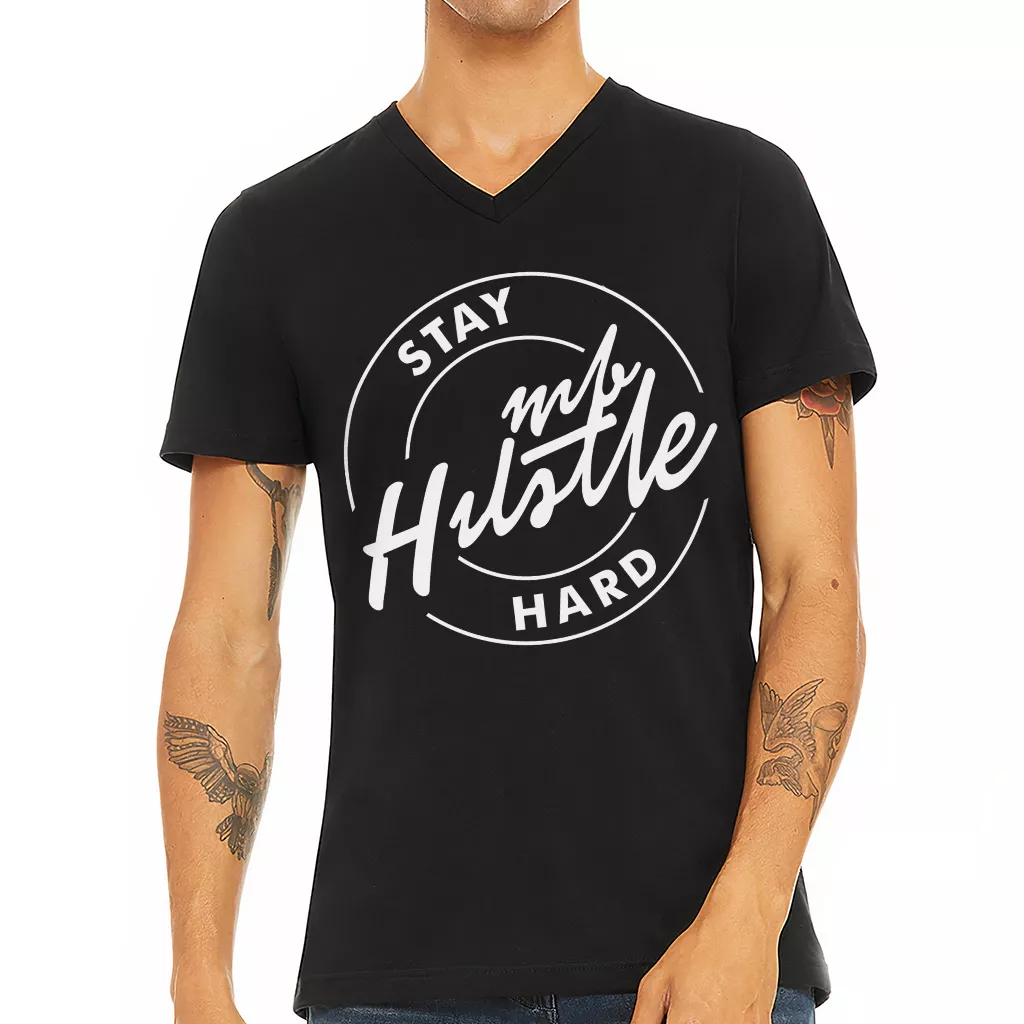 Stay Humble Hustle Hard V-Neck T-Shirt – Entrepreneur Quote Basic T-Shirt – Hustler Tee